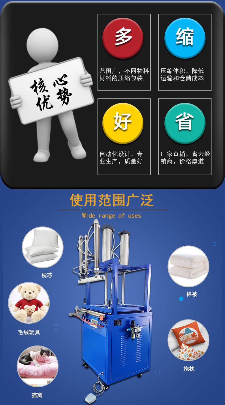 真空壓縮封口機商大型用全自動枕頭被子羽絨服毛絨玩具擠壓打包機